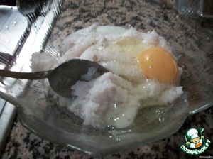 Размельчим в блендере, добавим яйцо, сливки, посолим и поперчим. Перемешаем.