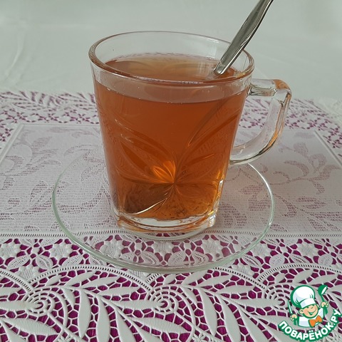 Итак, заливаем наш чай кипятком и ждeм, пока заварится. После этого убираем ситечко с чайным листом и добавляем в чай мeд и коньяк. Пьeм горячим и наслаждаемся острым вкусом.