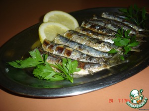 Процесс приготовления несложный: сардины в натуральном виде укладывают на раскаленную поверхность ребристой сковороды, жарят 8-10 мин, горячую подают к столу.