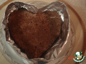 • Достаем сердце и делаем бортик из фольги, просовывая фольгу под сердце, заливаем почти уже схватившее желе сверху (я все это проделала, поставив тарелку в морозилку, так желе меньше будит вытекать!).
