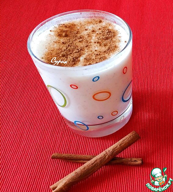 Готовила из 250 мл детского кефира 3,2% жирности и 1 ч.л. корицы. Сахар не добавляла.