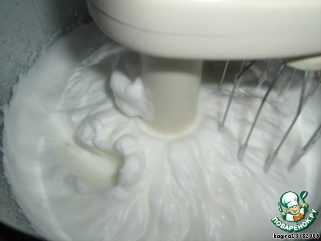 После окончания взбивания должна получиться густая, блестящая белая масса, похожая на взбитые белки.