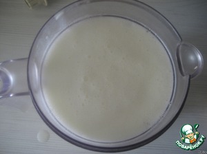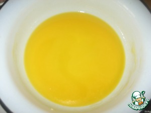 Кефир и яйца взбить, добавить соль, сахар и соду (не гасить).