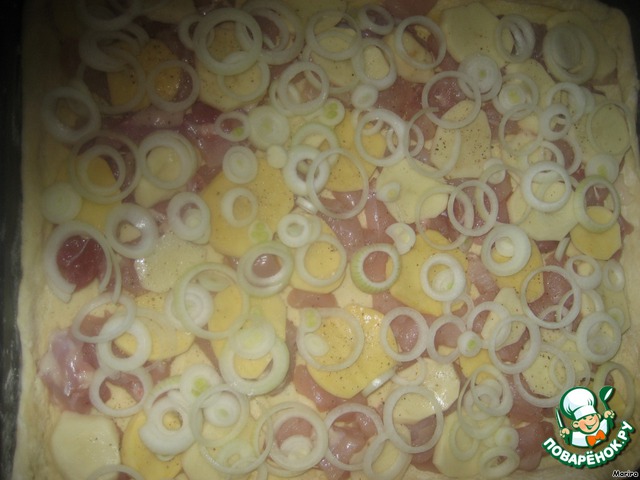 Пирог подавать с куриным бульоном. Приятного аппетита!