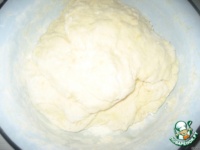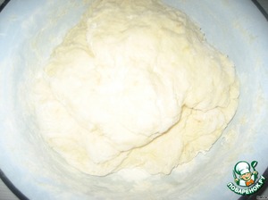 Соединить масляную и кефирную смесь. Замесить тесто постепенно добавляя оставшуюся муку.