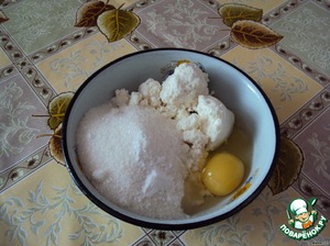 • Смешать творог, 1 стакан сахара, ванилин и яйцо.