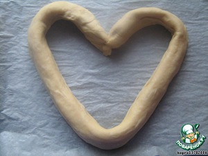 В середину сердца выкладываем второй рулет, и слегка прижимаем его к первому, чтобы они соприкасались друг с другом.