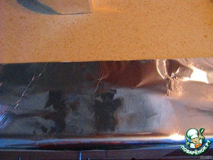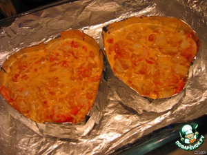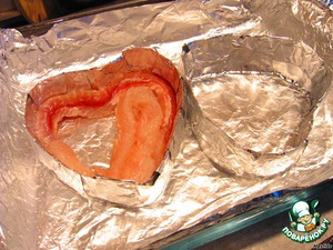 Небольшую глубокую форму застилаем фольгой, смазываем маслом, ставим наши формочки-сердечки
