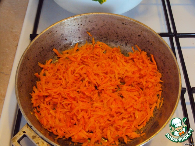 Морковку натереть и слегка припустить на растительном масле. Остудить.