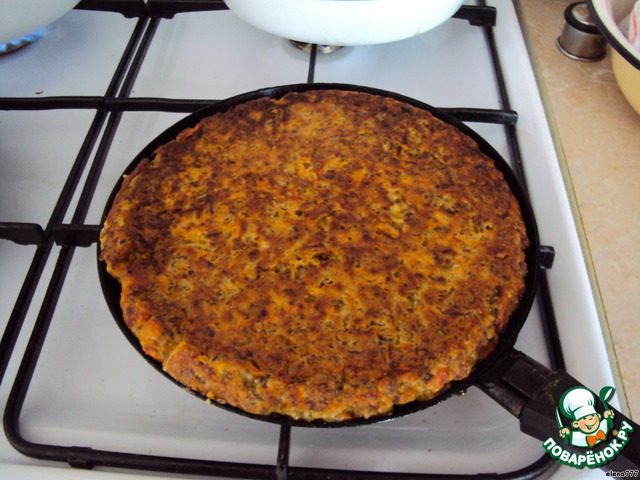 Выложить приготовленный фарш на горячую сковороду и обжарить блин с обеих сторон.