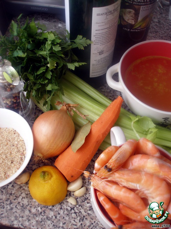 • И креветочки. Да, морепродукы должны быть заранее разморожены, желательно, в естественных условиях.