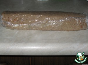 Печень протушить на небольшом огне до готовности. Морковь и лук порезать (лук - полукольцами, морковь - тонкими кружками) и тоже тушить до готовности. Затем печень с овощами прокрутить дважды через мясорубку. Добавить соль и специи по вкусу. Выложить ровным слоем на пищевую пленку.