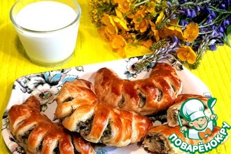 • При помощи скалки раскатать тесто в овальные лепешки. Положить начинку и соединить края.