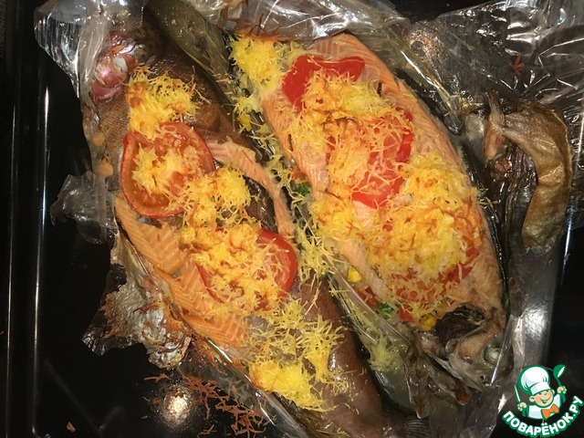 Рецепт «Форель, запечeнная с овощной смесью»: