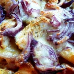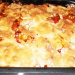 Равномерно заливаем жидкостью весь противень. Трeм сыр на крупной тeрке, посыпаем блюдо. Сверху противня кладeм фольгу и ставим в разогретую до 220 град. духовку. Выдерживаем в духовке 40 минут. Затем снимаем фольгу и доводим до румяной корочки сыра ещe 20 минут.