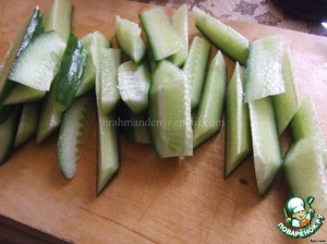 Теперь режем овощи. Перец ---> на красивый квадрат