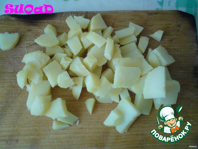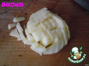 Картошку нарезать кубиками.