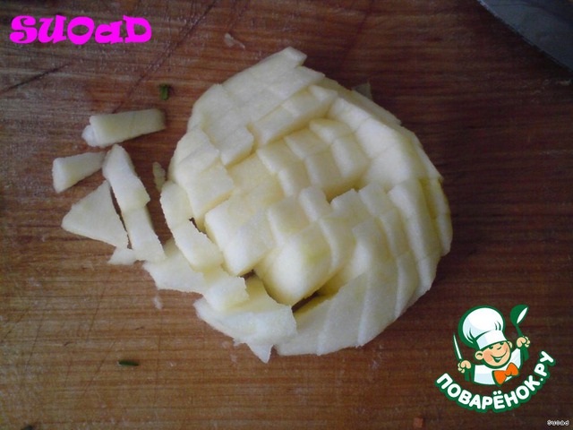 Яблоко очистить и порезать маленькими кубиками.