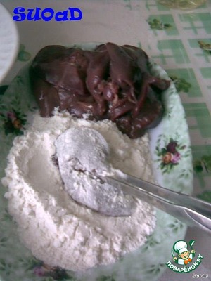 Обваляные в муке кусочки печени обмакнуть в соус из яиц и соевого соуса, обжарить на раст. масле.