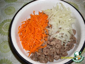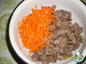 Добавить морковь по- корейски. Морковь лучше приготовить самому. Так она получается нежнее и вкуснее.