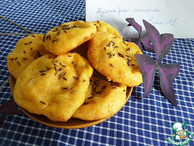 Посыпаем их тмином и, по желанию, крупной солью. -