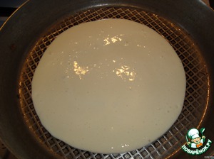 На разогретую, смазанную растительным маслом сковородку наливаем порцию теста, уменьшаем огонь и накрываем крышкой.
