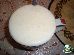 В оставшийся кефир добавляем соду, хорошенько перемешиваем.