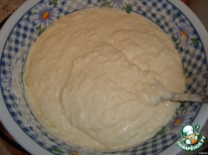 Творог взбиваем с яйцами, добавляем половину кефира.