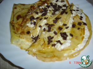 На десертную тарелку укладываем 2 блинчика, посыпаем тертым шоколадом, поливаем медом.