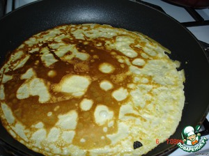 Выложить начинку по краю блинчика, осторожно сложить его два раза.