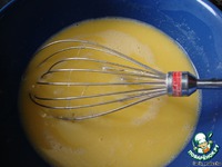 Добавить к смеси яйца, тщательно перемешивая, чтобы яйца не сварились. |