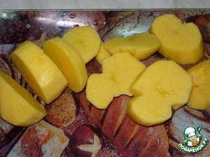 Картофель - если мелкий, то целиком, если крупный, на 3-4 части. Не мельчить!