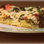 помидорки, заливаем заливкой и отправляем в духовку на полчаса, опять же при 180С. Противень лучше ставить повыше, а то картошка с заливкой приготовятся быстро, а помидорки не успеют "схватиться".