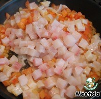 мелкими кубиками нарезаем рыбку - и в сковородку