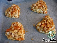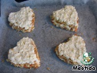 слой измельченных блинчиков (для этого обрезки, которые остались после вырезания сердечек надо мелко порезать)