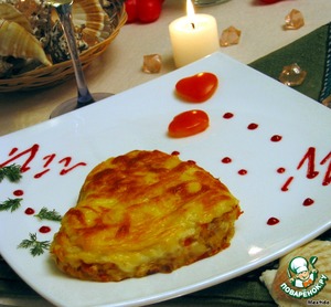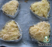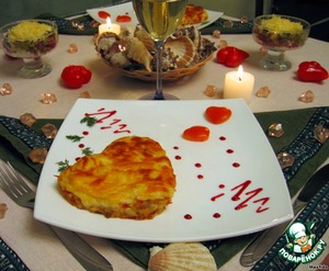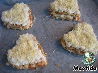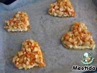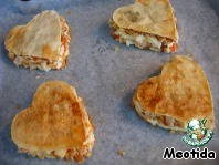 всю эту вкуснятину закрываем блинными сердечками, слегка придавливаем