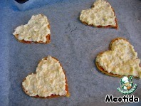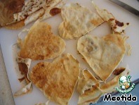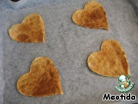 из блинов вырезаем сердечки (я из каждого блинчика вырезала 4 сердечка)