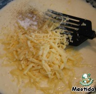 готовим, пока соус не загустеет, приправляем солью, перцем, добавляем 50 грамм тертого сыра, все быстро перемешиваем