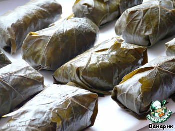 Виноградные листья промыть и замочить в воде с добавлением сока половинки лимона.