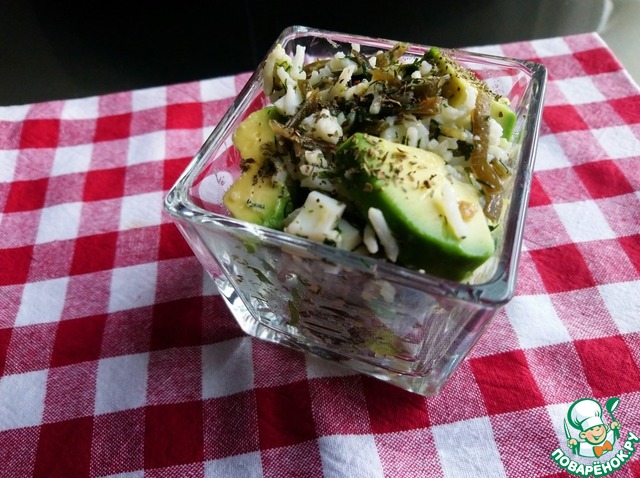 Сытный и полезный салат из морской капусты с рисом и авокадо. Рецепт из интернета с небольшими изменениями.