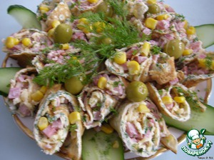Разрезать каждый рулетик на 3 части. Закуска готова!