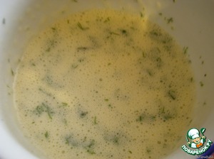 Взбить яйца с майонезом и мелко нарезанной зеленью.