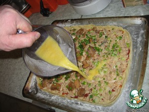 Яйцо слегка взбить вилкой и полить сверху (стараться равномерно) по всей поверхности.