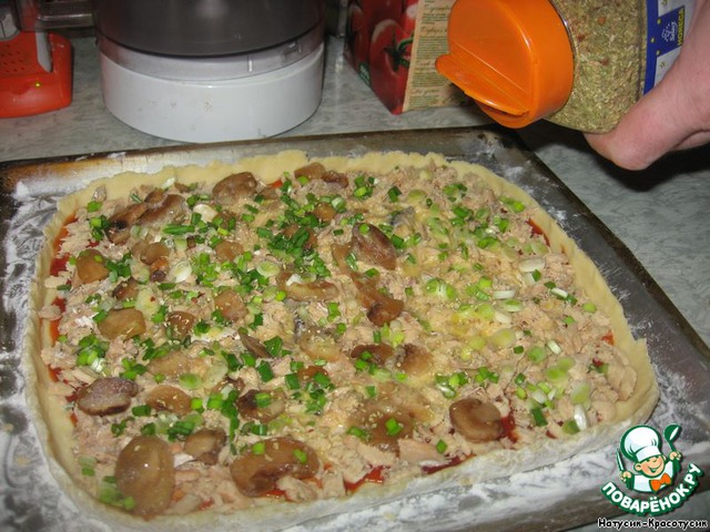 Можно посыпать приправой. (у нас приправа для пиццы)