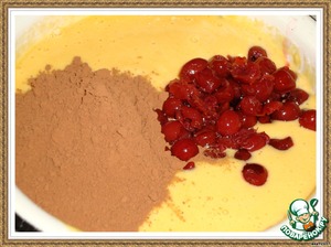Затем добавить какао и вишню. Вишню, думаю, можно и замороженную. Только предварительно разморозить и слить образовавшийся сок.