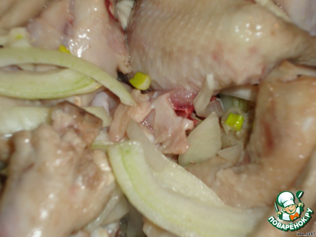 - Курица (или крылышки и голень, примерно) — 1,3 кг