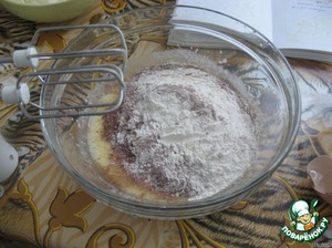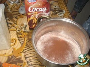 Муку, разрыхлитель, соду и какао просеять. У меня какао др. Оеткер (впервые такое купила).