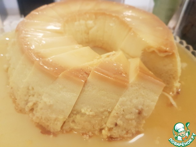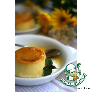На дно формочки, я пользуюсь стеклянными выдерживающие тепло духовки, наливаем карамель. Потом молочную смесь.