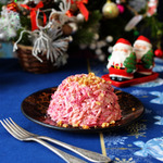 И в завершении - вареная свекла. Слой из свеклы мажем майонезом.