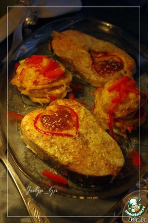 Видимо, у меня руки не приспособлены под выкладывание полосок перца в форме жопки, да ещё внутри стейка рыбы. Это что-то из разряда молекулярной микрохирургии.